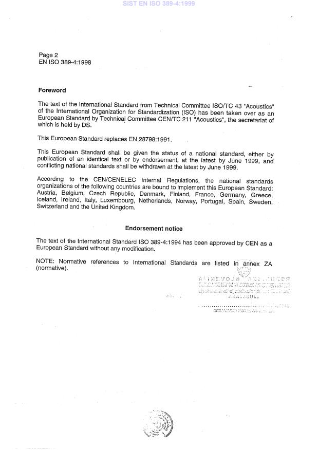 EN ISO 389-4:1998 is classified under the following ICS (International Classification for Standards) categories: 13.140 - Noise with respect to human beings. The ICS classification helps identify the subject area and facilitates finding related standards.