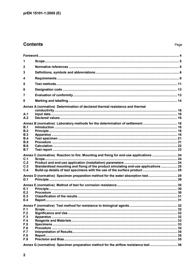 - Requirements and test methods for settlement, short‑term water absorption, airflow resistance, resistance to biological agents, corrosion and reaction to fire.
