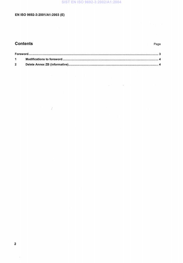 Ta slovenski standard je istoveten z: EN ISO 9692-3:2001/A1:2003