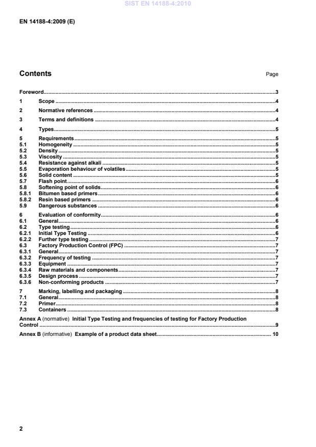 Ta evropski standard opredeljuje zahteve za opis lastnosti materialov za predhodne premaze za hladno in toplo nanosljive tesnilne mase za stike za uporabo pri cestah, letališčih in drugih betonskih tlakih. Ta evropski standard velja tudi za predhodne premaze za hladno in toplo nanosljive tesnilne mase za stike pri bituminoznih krovnih plasteh ter za bituminozne krovne plasti in sosednji betonski tlak.