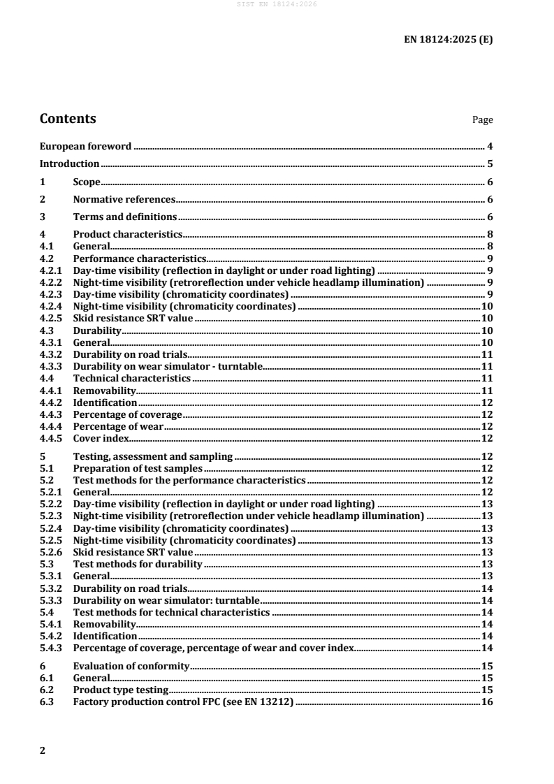 Dieses Dokument enthält auch Spezifikationen für die Konformitätsbewertung vorübergehend gültiger Straßenmarkierungen auf Verkehrsflächen, einschließlich Typprüfung und werkseigener Produktionskontrolle.