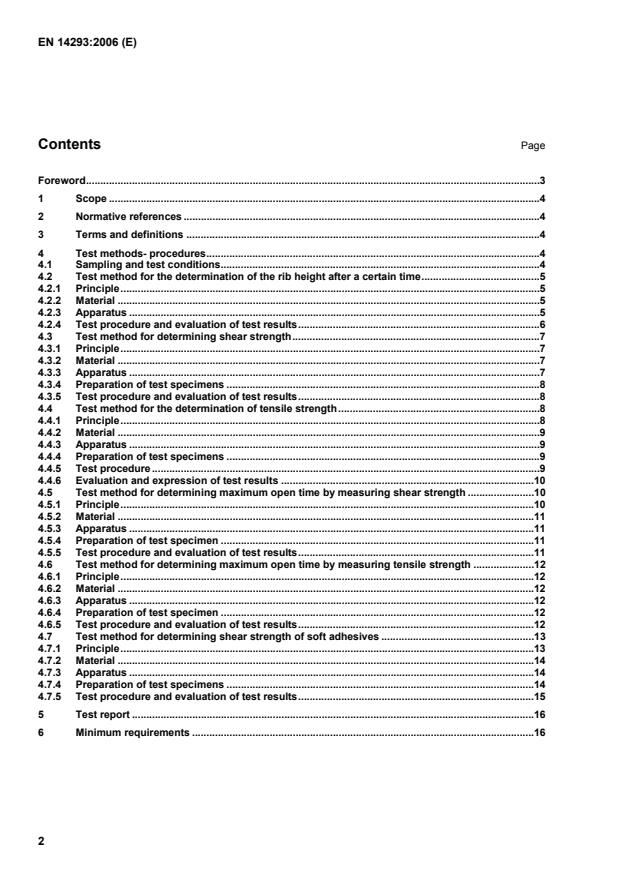 This European Standard specifies test methods for adhesives for bonding parquet and similar wood floorings to a subfloor. It also specifies the minimum requirements for shear strength and tensile strength to be achieved with these adhesives, as well as a method for determining the open time. there are two different test methods and different minimum requirements for determing the shear strength for hard and soft adhesives.
