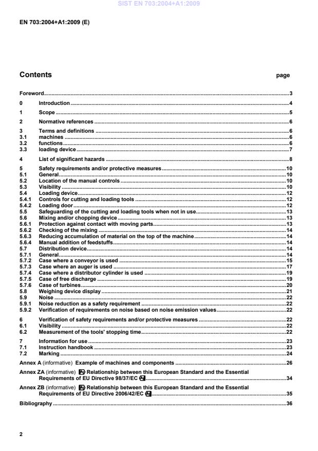 EN 703:2004+A1:2009 is a standard published by the European Committee for Standardization (CEN). Its full title is "Agricultural machinery - Silage loading, mixing and/or chopping and distributing machines - Safety". This standard covers: This document, used together with EN 1553, specifies the safety requirements and their verification for the design and construction of mounted, semi-mounted, trailed or self-propelled machines that have a combination of two or more of the following functions: loading, mixing, chopping and distributing silage and/or other feedstuffs, to be used by one operator only. It includes those fitted with a built-in loading crane. In addition, it specifies the type of information on safe working practices (including residual risks) to be provided by the manufacturer. This document applies only to machines that have the following functional combinations: - mixing and distributing functions; or - mixing, chopping and distributing functions; or - loading, mixing and distributing functions; or - loading, mixing, chopping and distributing functions; or - chopping and distributing functions; or - loading, chopping and distributing functions. Silage block cutters, even if they carry out a single function, are covered by this document. It does not apply: - to machines which pick up green fodder directly from the field; - to loading cranes; - to silage buckets. NOTE 1 Loading cranes are dealt with in EN 12999. NOTE 2 Silage buckets will be dealt through an amendment or during next revision. This document deals with all the significant hazards, hazardous situations and events relevant to machines for loading, mixing and/or chopping and distributing silage and/or other feedstuffs, when they are used as intended and under the conditions foreseen by the manufacturer as listed in clause 4, except for the hazards arising from: - failure of the control circuit; - inadequate seating; - inadequate lighting; - impossibility of stopping the machine in the best possible conditions; - travelling of machinery; - break-up of parts rotating at high speed. It is not applicable to environmental hazards (except noise).