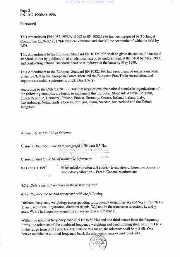 EN 1032:1996/A1:1998 is a amendment published by the European Committee for Standardization (CEN). Its full title is "Mechanical vibration - Testing of mobile machinery in order to determine the whole-body vibration emission value - General - Amendment 1". This standard covers: Mechanical vibration - Testing of mobile machinery in order to determine the whole-body vibration emission value - General - Amendment 1