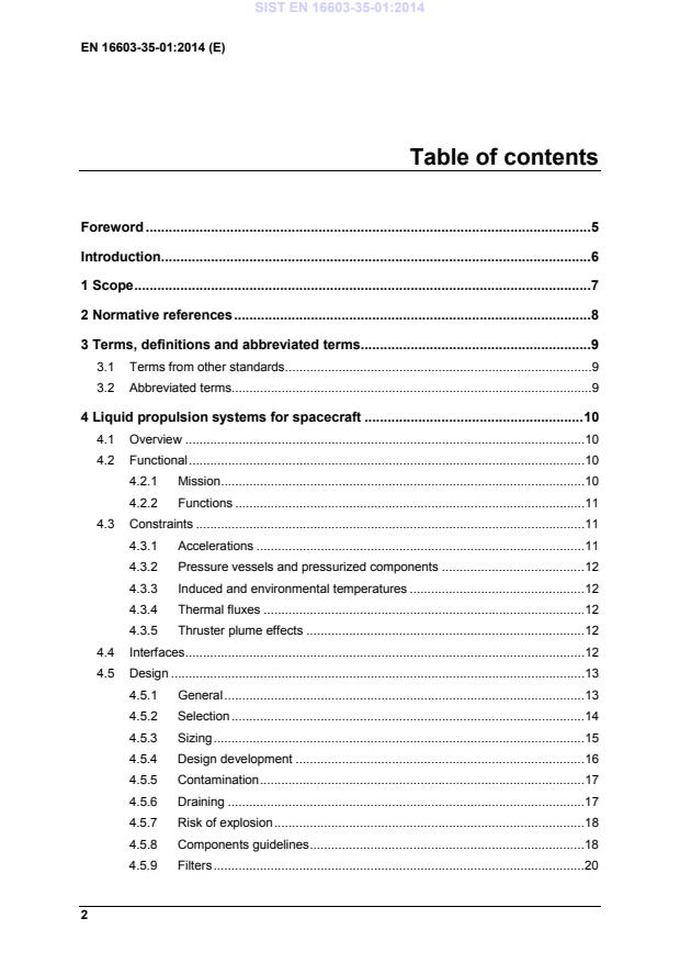 propulsion system design and ensure proper functioning. b. The analysis specified in 4.5.1.3a shall be reported in conformance with the Propulsion transient analysis report DRD in ECSS-E-ST-35. 4.5.1.4 Piping a. A pipework design analysis shall be performed including non-consumables, cross-coupling, leakage, pressure, eigenfrequencies, water-hammer. b. The consequences in terms of operational restrictions shall be identified. 4.5.1.5 Closed volumes a. The design of the propulsion system shall prevent hazardous pressure increase in closed volumes. b. The need for any pressure relief capability shall be identified and analysed. SIST EN 16603-35-01:2014