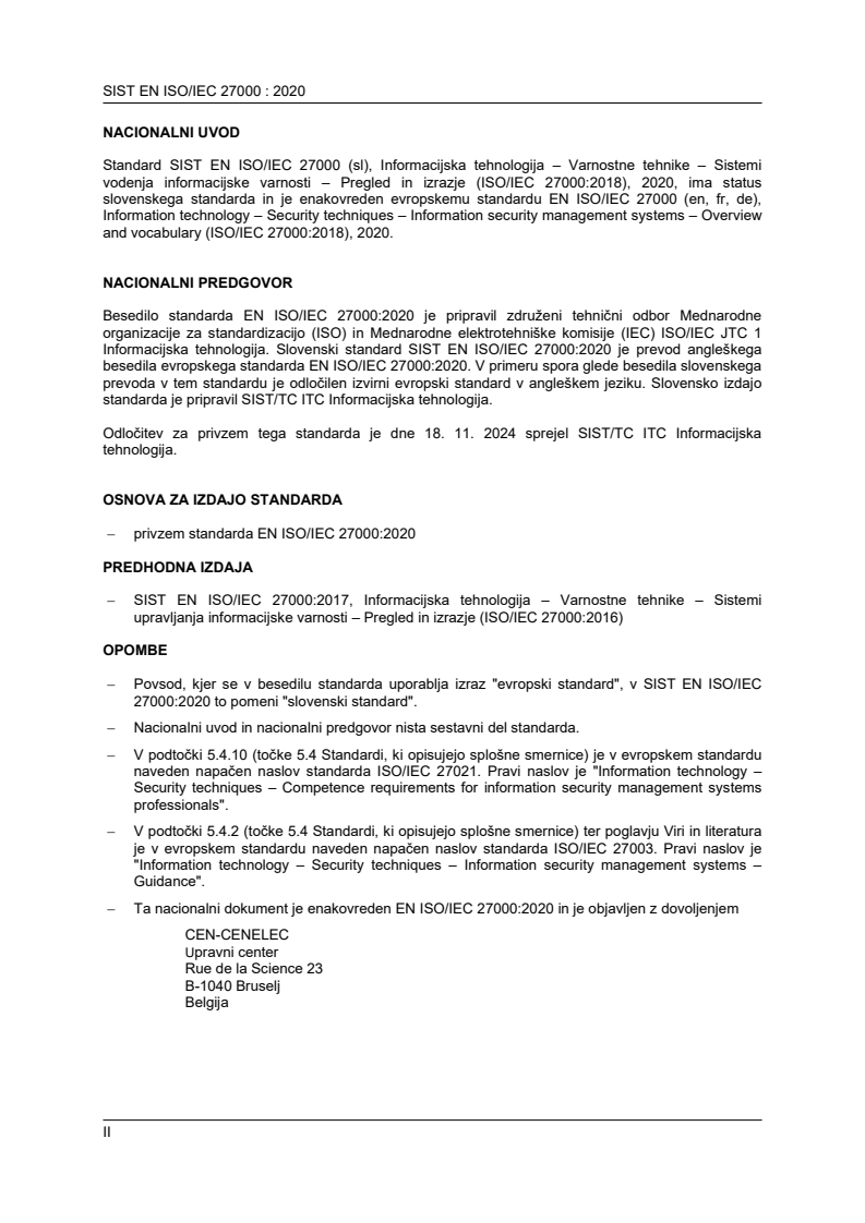 Ta slovenski standard je istoveten z: EN ISO/IEC 27000:2020