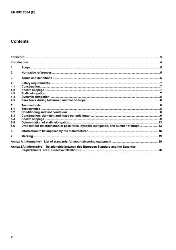 EN 892:2004 is a standard published by the European Committee for Standardization (CEN). Its full title is "Mountaineering equipment - Dynamic mountaineering ropes - Safety requirements and test methods". This standard covers: This document specifies safety requirements and test methods for dynamic ropes (single, half and twin ropes) in kernmantel construction for use in mountaineering including climbing.
