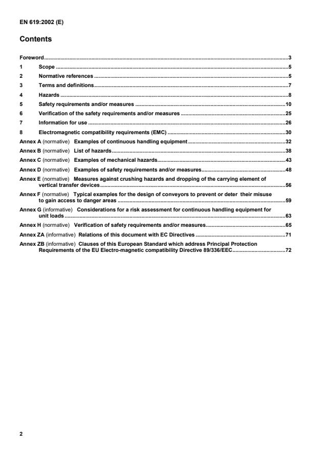 EN 619:2002 is a standard published by the European Committee for Standardization (CEN). Its full title is "Continuous handling equipment and systems - Safety and EMC requirements for equipment for mechanical handling of unit loads". This standard covers: This standard applies to mechanical conveyor devices designed exclusively for moving unit loads continuously on a predefined route from the loading to the unloading point, possibly with varying speed or cyclically. It also applies to continuous conveyors which are built into machines or attached to machines.