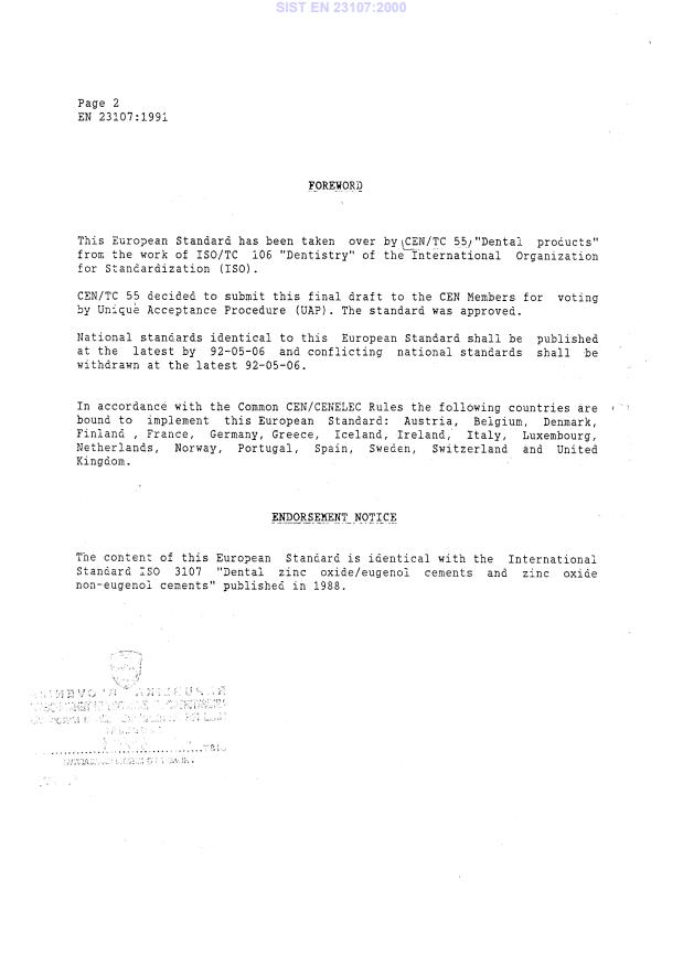 EN ISO 3107:2004 - Dentistry - Zinc oxide/eugenol and zinc oxide/non-eugenol cements (ISO 3107:2004) - Effective Date