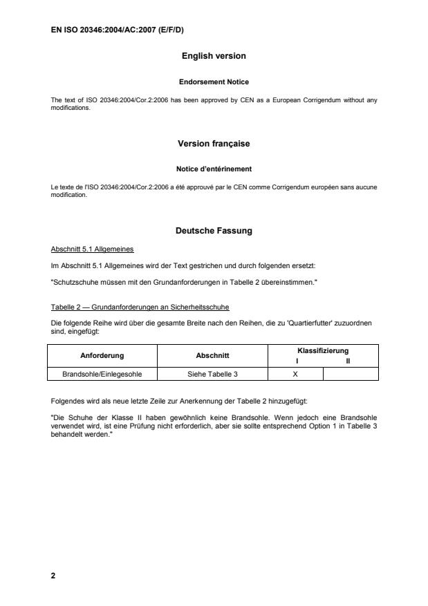 Le texte de l'ISO 20346:2004/Cor.2:2006 a été approuvé par le CEN comme Corrigendum européen s