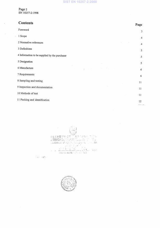 EN 10257-2:1998 is a standard published by the European Committee for Standardization (CEN). Its full title is "Zinc or zinc alloy coated non-alloy steel wire for armouring either power cables or telecommunication cables - Part 2: Submarine cables". This standard covers: This Part of this European Standard specifies requirements for the properties of non-alloy zinc or zinc alloy coated steel wires used for the armouring of either submarine power and telecommunication cables in diameters ranging from 2,12 to 8,50 mm. The nominal wire diameters are specified in tables 2,3 and 4.
