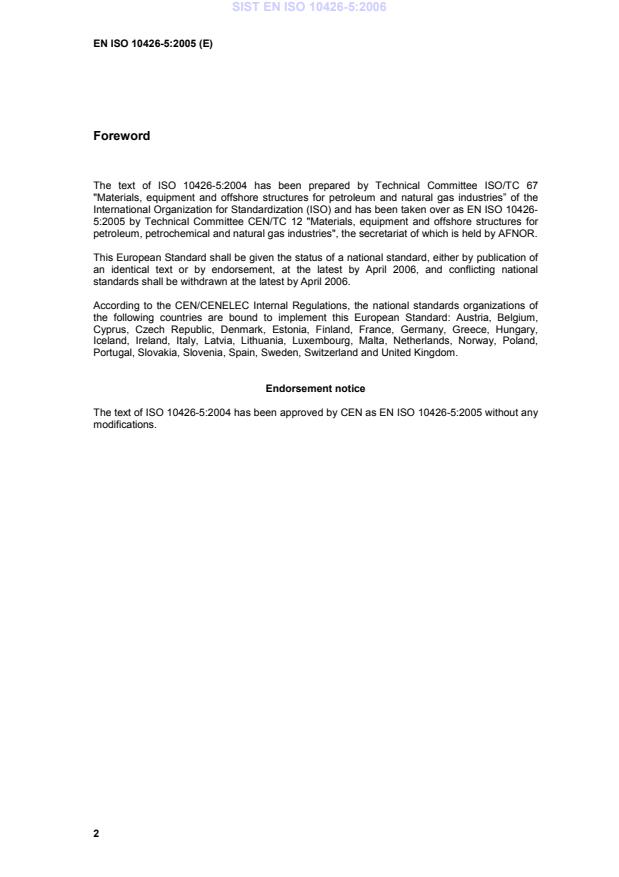 © 2005 CEN All rights of exploitation in any form and by any means reserved Ref. No. EN ISO 10426-5:2005: E