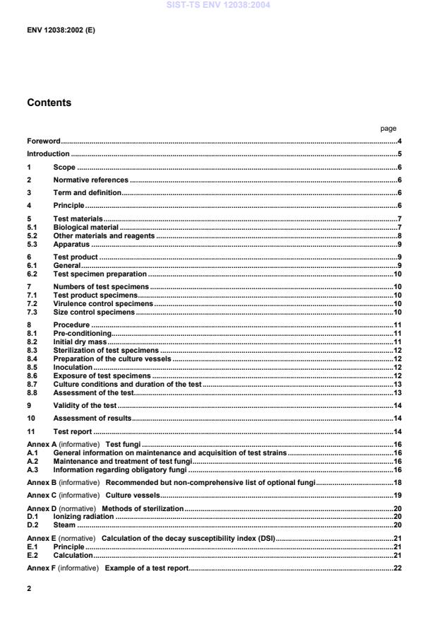 ENV 12038:2002 is a standardization document published by the European Committee for Standardization (CEN). Its full title is "Durability of wood and wood-based products - Wood-based panels - Method of test for determining the resistance against wood-destroying basidiomycetes". This standard covers: This European Prestandard specifies a method for assessing the resistance of wood-based panel products to attack by wood-destroying basidiomycete fungi growing in pure culture. The method is applicable to uncoated, rigid wood-based panel products. It is applicable to the determination of the decay resistance of wood-based panel products: - made from naturally durable materials; - made from materials treated with preservatives prior to manufacture; - treated with a preservative which is introduced during manufacture, for example as an additive to the adhesive; - treated with preservative after manufacture. NOTE 1 This method can be used in conjunction with an appropriate ageing procedure, for example EN 73 or EN 84. NOTE 2 Wood-based panel products that have received a preservative treatment after manufacture can be susceptible to attack through the cut edges of the test specimens and the decay resistance indicated can be less than that of complete panels used in service.