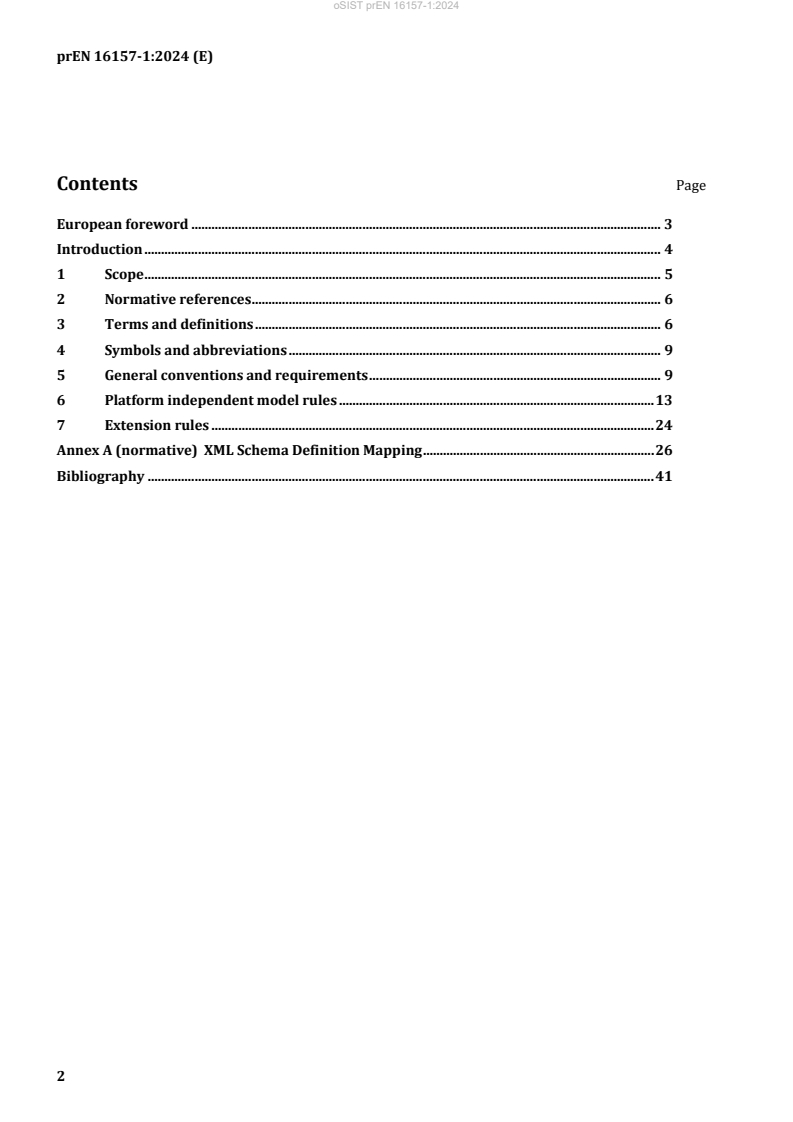 prEN 16157-1 (CEN) defines the DATEX II framework - the context, modelling approach and mandatory reference rules for exchanging traffic and travel data across systems. It specifies the components required to support interoperable data exchange for road traffic, related public transport links and Cooperative Intelligent Transport Systems (C-ITS). The standard establishes how data content, structure and relationships are modelled (UML), mapped to technical formats (XML/XSD) and extended in a controlled way.