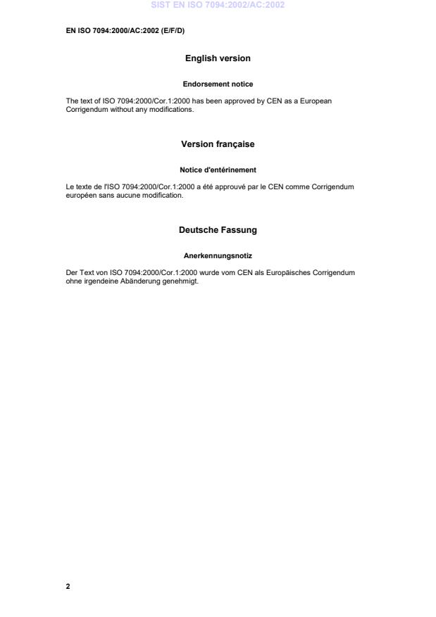 EN ISO 7094:2000/AC:2002 has the following relationships with other standards: It is inter standard links to EN ISO 7094:2000. Understanding these relationships helps ensure you are using the most current and applicable version of the standard.