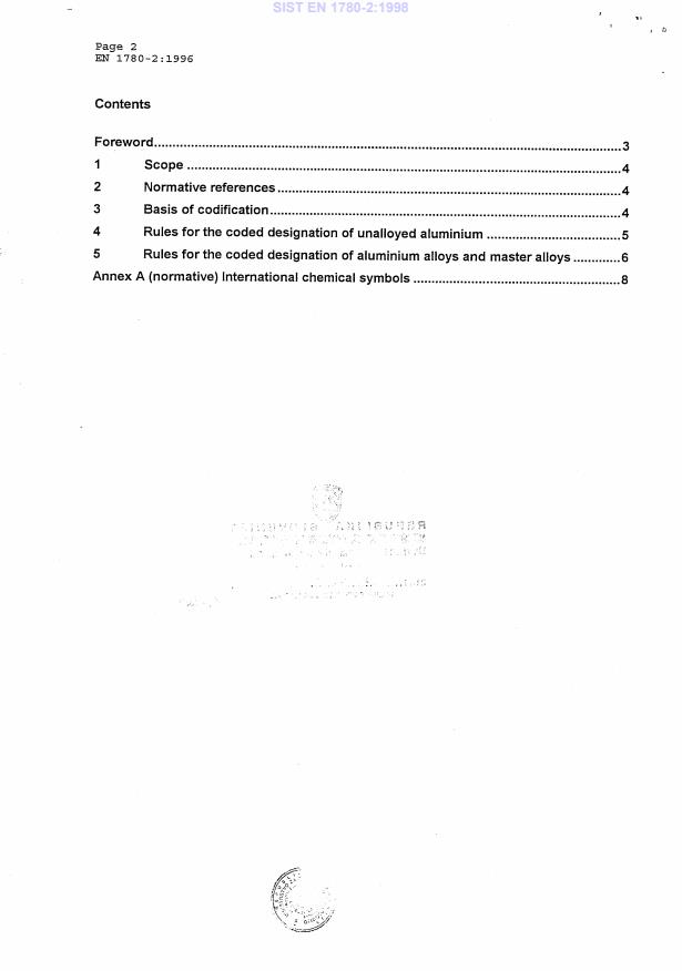 2003-01.Slovenski inštitut za standardizacijo. Razmnoževanje celote ali delov tega standarda ni dovoljeno.Aluminium und Aluminiumlegierungen - Bezeichnung von unlegiertem und legiertem Aluminium in Masseln, Vorlegierungen und Gußstücken - Teil 2: Bezeichnungssystem mit chemischen SymbolenAluminium et alliages d'aluminium - Systeme de désignation applicable aux lingots pour refusion en aluminium allié ou non allié, aux alliages-meres et aux produits moulés - Partie 2: Systeme de désignation basé sur les symboles chimiquesAluminium and a