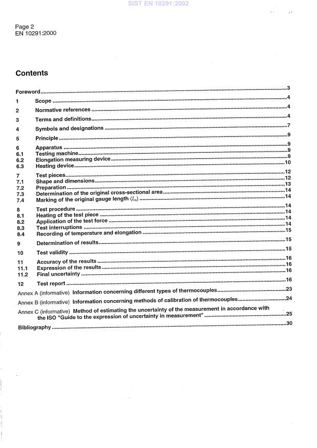 EN 10291:2000 is a standard published by the European Committee for Standardization (CEN). Its full title is "Metallic materials - Uniaxial creep testing in tension - Method of test". This standard covers: This draft European Standard specifies the method for the uninterrupted and interrupted creep tests and defines the properties of metallic materials which can be determined from these tests, in particular the creep elongation and the time of creep rupture, at a specified temperature. NOTE: The stress rupture test is also covered by this standard.