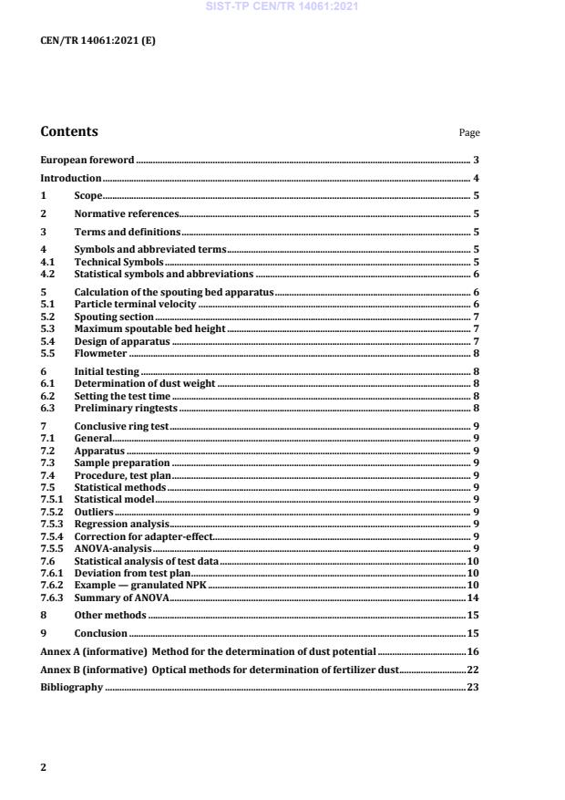 Keywords: CEN/TR 14061:2021, fertilizer dust content, dust potential, spouting bed, dust testing, prilled fertilizer, granulated fertilizer, gravimetric determination, ANOVA, ring test.