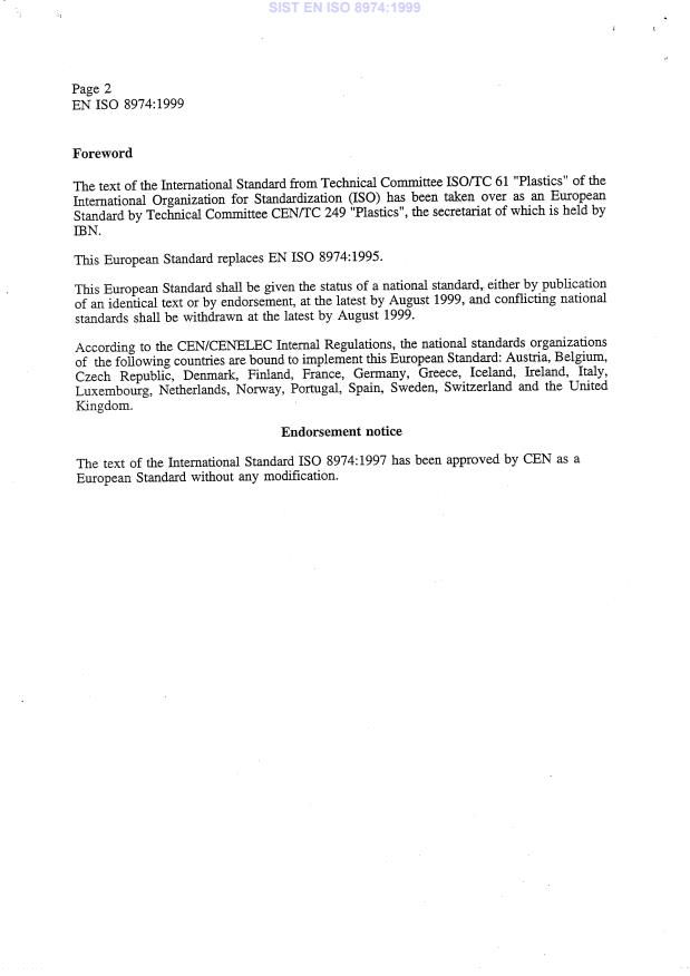 EN ISO 8974:1999 is classified under the following ICS (International Classification for Standards) categories: 83.080.10 - Thermosetting materials. The ICS classification helps identify the subject area and facilitates finding related standards.