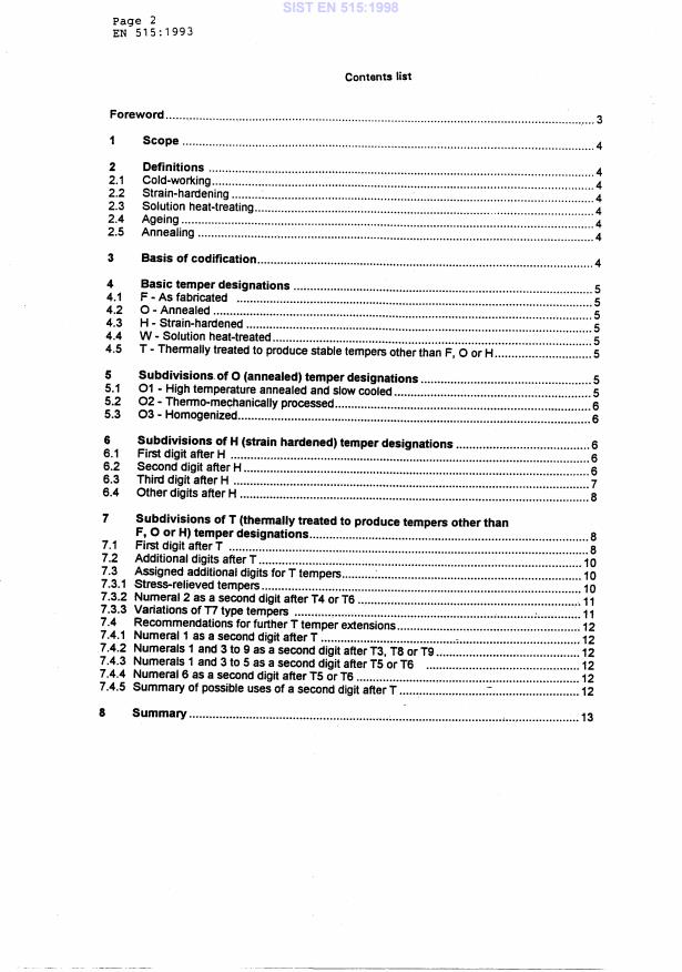 EN 515:1993 is a standard published by the European Committee for Standardization (CEN). Its full title is "Aluminium and aluminium alloys - Wrought products - Temper designations". This standard covers: This European Standard establishes temper designation for all forms of wrought aluminium and aluminium alloys and to continuously cast aluminium alloy drawing stock and strip intended to be wrought.