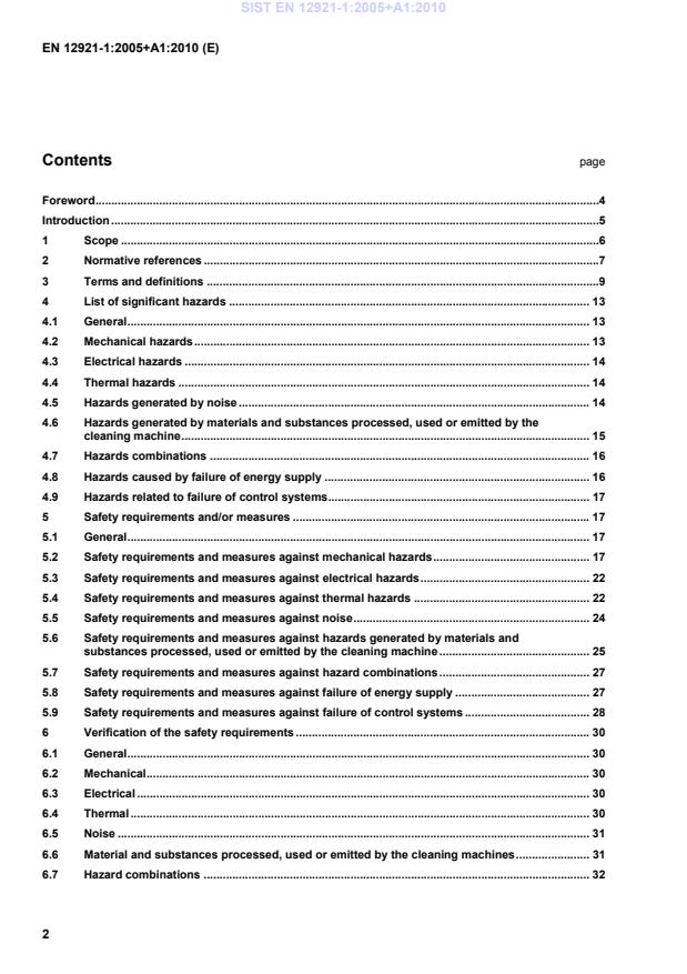 − pumps and pump units for liquids as covered by EN 809." 1.4 This standard is not applicable to cleaning machines for industrial items which are manufactured before the date of publication of this document by CEN. 2 Normative references The following referenced documents are indispensable for the application of this document. For dated references, only the edition cited applies. For undated references, the latest edition of the referenced document (including any amendments) applies. EN 294, Safety of machinery — Safety distance to prevent danger zones being reached by the upper limbs EN 349, Safety of machinery — Minimum gaps to avoid crushing of parts of the human body EN 418, Safety of machinery - Emergency stop equipment, functional aspects - Principles for design EN 563, Safety of machinery — Temperatures of touchable surfaces — Ergonomics data to establish temperature limit values for hot surfaces EN 619, Continuous handling equipment and systems — Safety and EMC requirements for equipment for mechanical handling of unit loads EN 626-1, Safety of machinery — Reduction of risks to health from hazardous substances emitted by machinery — Part 1: Principles and specifications for machinery manufacturers SIST EN 12921-1:2005+A1:2010