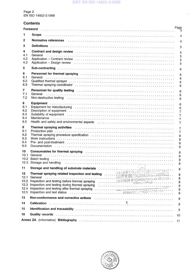 EN ISO 14922-3:1999 is a standard published by the European Committee for Standardization (CEN). Its full title is "Thermal spraying - Quality requirements of thermally sprayed structures - Part 3: Standard quality requirements (ISO 14922-3:1999)". This standard covers: This standard specifies requirements so that: -it is independent of the type of the thermally sprayed structure; - it defines quality requirements for thermal spraying both in workshops and on site; - it provides guidance for describing a manufacturer's capability to produce thermally sprayed constructions to meet specified requirements; - it may also be used as a basis for assessing the manufacturer in respect to his thermal spraying capability.