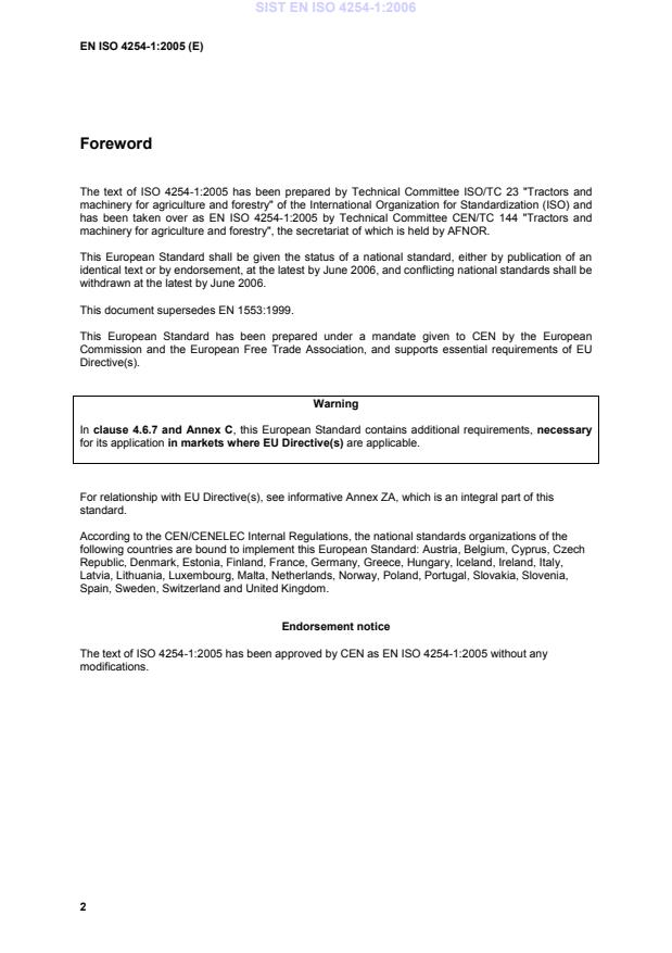 has been taken over as EN ISO 4254-1:2005 by Technical Committee CEN/TC 144 "Tractors and