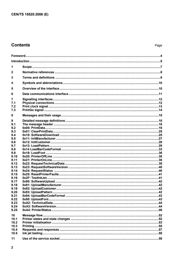 CEN/TS 15525:2006 is a technical specification published by the European Committee for Standardization (CEN). Its full title is "Postal Services - Standard Interfaces - Interface between Machine Control and Bar Code Printers". This standard covers: This document specifies the electrical, data and timing interface between the control unit of a postal sorting system and an ink jet printer connected to that system. It further specifies an ancillary interface to the printer, which can be used for the support of remote diagnostics and other service functions. NOTE 1 This specification can equally be applied to the interfacing of printers to sequencing systems and combined sorting and sequencing systems. It was primarily developed for application to ink jet printers, but could be applied to printers with similar functionality that make use of other printing technologies. At the physical level, the specification is based on the use of a combination of a standard 100 Mbps Ethernet connection for the transfer of data and patch cables for signalling. At a logical level, data is transferred using messages transmitted across the Ethernet connection using three TCP/IP sockets, with the execution of time-critical functions being controlled through the use of signals on a TIA/EIA-422 interface. NOTE 2 Several printers can be connected to a single sorting system. In this case, the printers can optionally share access to a single Ethernet network, but each requires its own patch cables. This standard does not support the connection of a single printer to multiple sorting system control units. This document defines all messages that may be transferred via each of the TCP/IP sockets, specifies printer behaviour on receipt of these messages and defines how the timing of this behaviour is controlled by the TIA/EIA-422 signals......