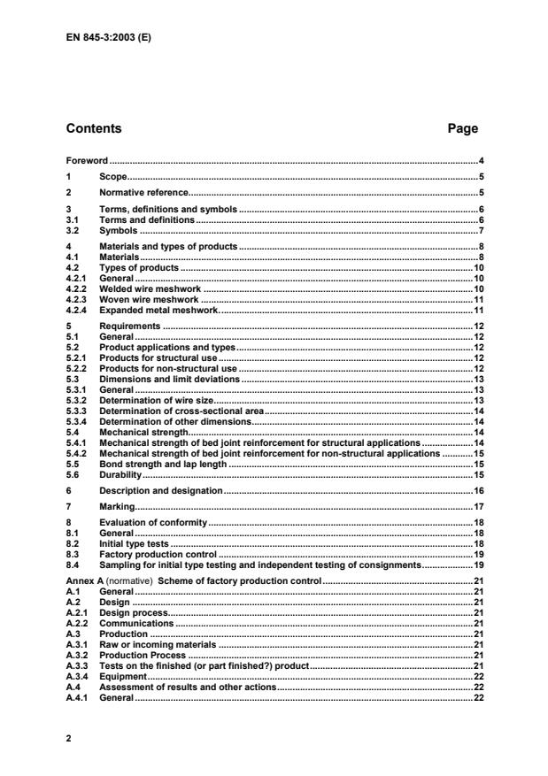 EN 845-3:2003 is a standard published by the European Committee for Standardization (CEN). Its full title is "Specification for ancillary components for masonry - Part 3: Bed joint reinforcement of steel meshwork". This standard covers: This EN specifies the requirements for welded wire meshwork, woven wire meshwork and expanded metal meshwork for use as reinforcement in bed joints of masonry. Where products are intended for use in cavity wall construction, this European Standard covers only the performance of the meshwork as reinforcement in bed joints and not its performance as wall ties across the cavity.