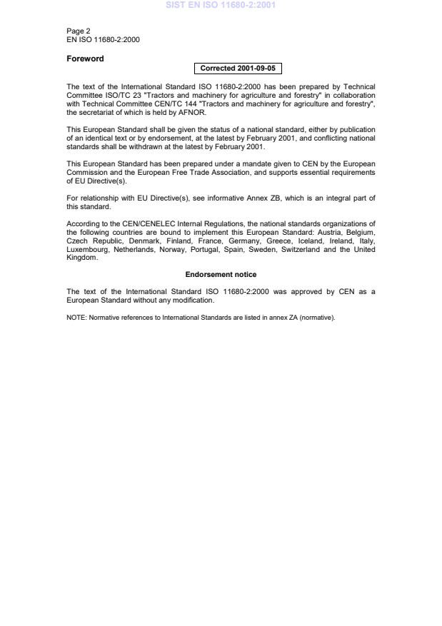 Page 2EN ISO 11680-2:2000ForewordCorrected 2001-09-05The text of the International Standard ISO 11680-2:2000 has been prepared by TechnicalCommittee ISO/TC 23 "Tractors and machinery for agriculture and forestry" in collaborationwith Technical Committee CEN/TC 144 "Tractors and machinery for agriculture and forestry",the secretariat of which is held by AFNOR.This European Standard shall be given the status of a national standard, either by publicationof an identical text or by endorsement, at the latest by February 2001, and conflicting nationalstandards shall be withdrawn at the latest by February 2001.This European