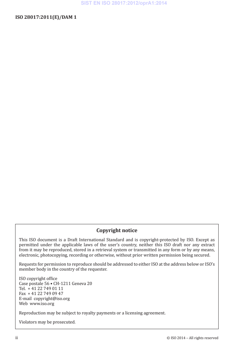 Ta slovenski standard je istoveten z: EN ISO 28017:2011/prA1