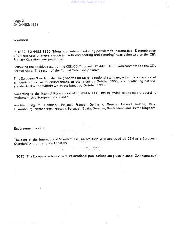 2003-01.Slovenski inštitut za standardizacijo. Razmnoževanje celote ali delov tega standarda ni dovoljeno.Metallic powders, excluding powders for hardmetals - Determination of dimensional changes associated with compacting and sintering (ISO 4492:1985)Metallpulver, mit Ausnahme von Hartmetallpulver - Ermittlung der Maßänderungen beim Pressen und Sintern (ISO 4492:1985)Poudres métalliques a l'exclusion des poudres pour métaux-durs - Détermination de changements dimensionnels liés a la compression et au frittage (ISO 4492:1985)Metallic powders, excluding powders for hardmetals - Determination of dimensional changes associated with compacting and sintering (ISO 4492:1985)77.160Metalurgija prahovPowder metallurgyICS:Ta slovenski standard je istoveten z:EN 24492:1993SIST EN 24492:2000en01-december-2000SIST EN 24492:2000SLOVENSKI