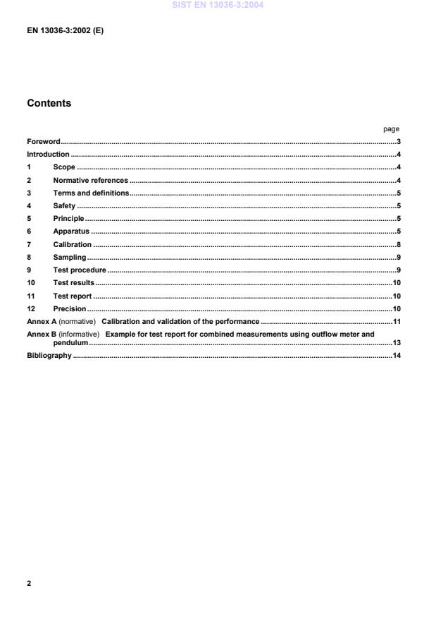 Example for test report for combined measurements using outflow meter andpendulum.13Bibliography.14SIST EN 13036-3:2004