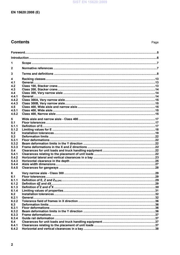 This European Standard gives guidance to be used in conjunction with the latest information from the truck and stacker crane suppliers regarding turning radii, tolerances and deformations of the truck and stacker cranes. 2 Normative references The following referenced documents are indispensable for the application of this document. For dated references, only the edition cited applies. For undated references, the latest edition of the referenced document (including any amendments) applies. prEN 15512 Steel static storage systems – Adjustable pallet racking systems – Principles for structural design prEN 15629 Steel static storage systems – The specification of storage equipment prEN ISO 3691-3, Industrial trucks – Safety requirements and verification – Part 3: Additional requirements for trucks with elevating operator position and trucks specifically designed to travel with elevated loads (ISO/DIS 3691-3:2007) SIST EN 15620:2009