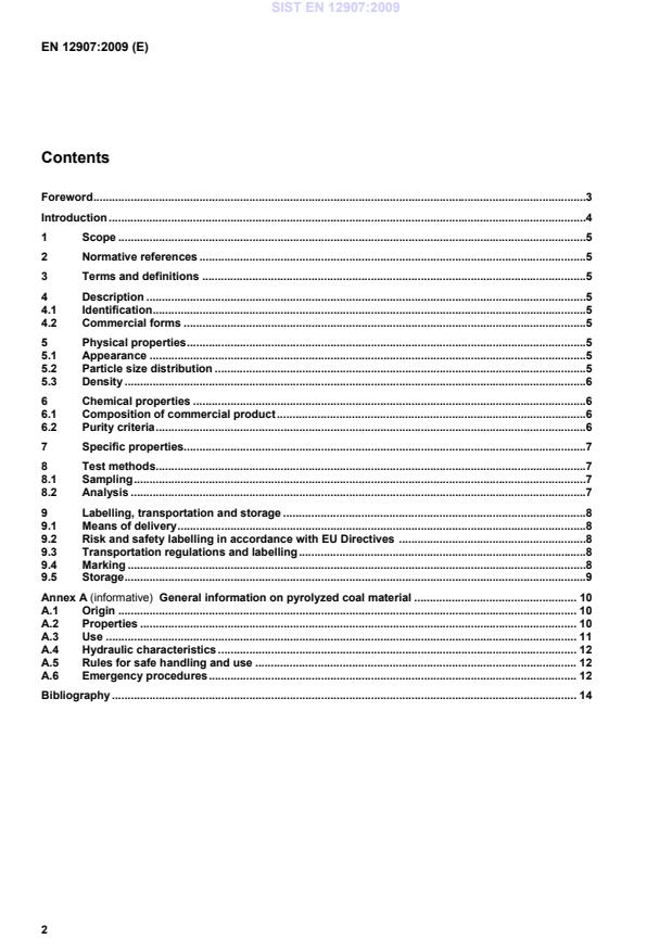 General information on pyrolyzed coal material . 10A.1Origin . 10A.2Properties . 10A.3Use . 11A.4Hydraulic characteristics . 12A.5Rules for safe handling and use . 12A.6Emergency procedures . 12Bibliography . 14 SIST EN 12907:2009