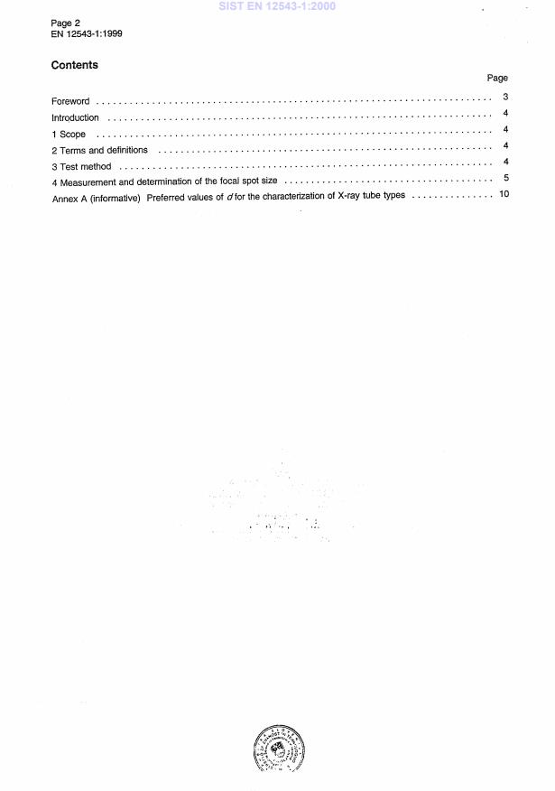 EN 12543-1:1999 is a standard published by the European Committee for Standardization (CEN). Its full title is "Non-destructive testing - Characteristics of focal spots in industrial X-ray systems for use in non-destructive testing - Part 1: Scanning method". This standard covers: This European standard specifies the measurement of focal spot dimensions of industrial X-ray systems up to and including 500 kV tube voltage. It describes a method of direct mechanical scanning of focal spots above 0,1 mm with a highly collimated receiver. The image quality and the resolution of X-ray images depend highly on the characteristics of the focal spot, in particular the size and the two-dimensional intensity distribution.