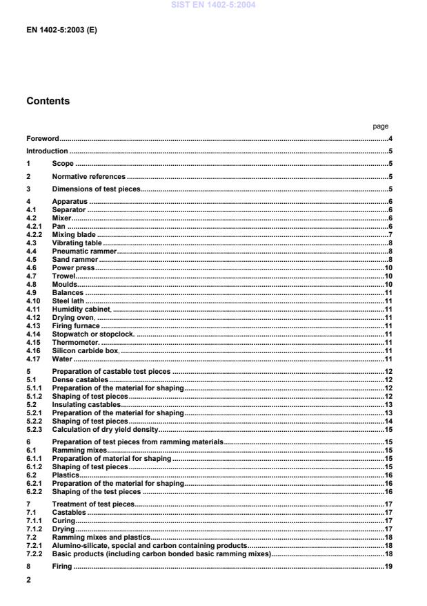 EN 1402-5:2003 is a standard published by the European Committee for Standardization (CEN). Its full title is "Unshaped refractory products - Part 5: Preparation and treatment of test pieces". This standard covers: This standard specifies methods for the preparation and treatment (curing, drying and firing) of test pieces from unshaped refractory materials. The dimensions of the test pieces are specified. The methods are applicable to dense and insulating castables and to mouldable materials (plastics and ramming mixes) with the four types of chemical composition defined in ENV 1402-1.