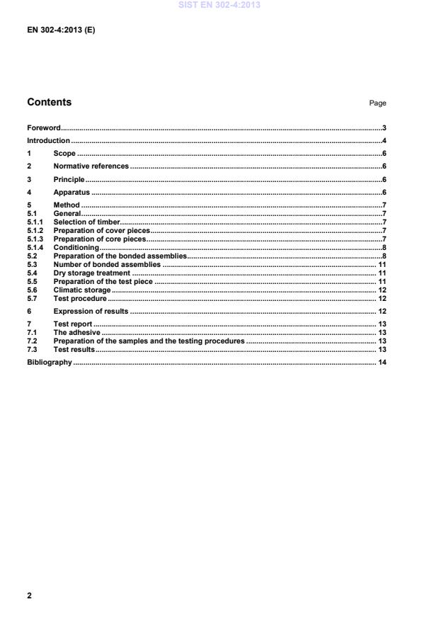 Part 1: Determination of longitudinal tensile shear strength Part 2: Determination of resistance to delamination Part 3: Determination of the effect of acid damage to wood fibres by temperature and humidity cycling on the transverse tensile strength Part 4: Determination of the effects of wood shrinkage on the shear strength Part 5: Determination of maximum assembly time under referenced conditions Part 6: Determination of the minimum pressing time under referenced conditions Part 7: Determination of the working life under referenced conditions EN 15416, Adhesives for load bearing timber structures other than phenolic and aminoplastic — Test methods Part 2: Static load test of multiple bondline specimens in compression shear Part 3: Creep deformation test at cyclic climate conditions with specimens loaded in bending shear Part 4: Determination of open assembly time for one component polyurethane adhesives Part 5: Determination of conventional pressing time Safety statement Persons using this document should be familiar with the normal laboratory practice, if applicable. This document cannot address all of the safety problems, if any, associated with its use. It is the responsibility of the user to establish appropriate safety and health practices and to ensure compliance with any regulatory conditions. SIST EN 302-4:2013