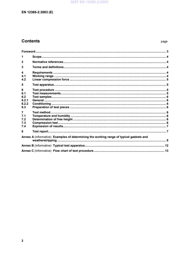 EN 12365-2:2003 is a standard published by the European Committee for Standardization (CEN). Its full title is "Building hardware - Gasket and weatherstripping for doors, windows, shutters and curtain walling - Part 2: Linear compression force test methods". This standard covers: This part 2 of prEN 33/WI 131/245 specifies the method to be used to select, condition and test samples of gasket or weatherstripping, to determine the force required to deflect them by a predetermined amount under the conditions layed down in the test. The test has been devised to cover all likely gasket and weatherstripping shapes or materials.