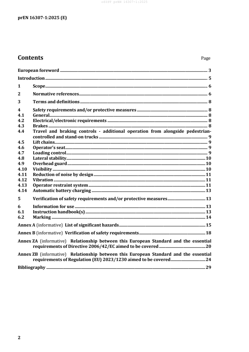 - Supplements prEN ISO 3691-1:2025 for specified self‑propelled industrial trucks.