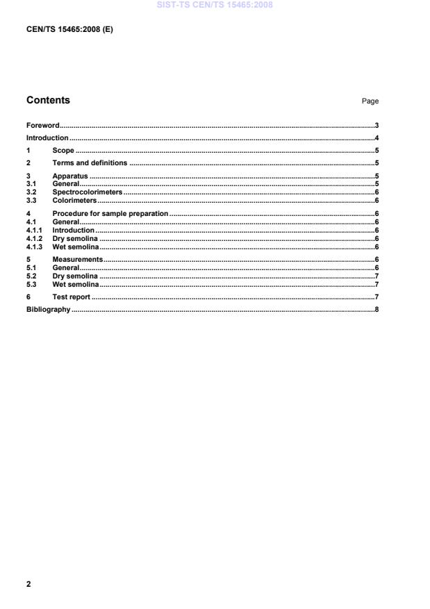 CEN/TS 15465:2008 is a technical specification published by the European Committee for Standardization (CEN). Its full title is "Cereals and cereal products - Durum wheat (T. durum Desf.) - General guidelines for instrumental methods measurement of semolina colour". This standard covers: This standard defines general guidelines for the instruments used to determine colorimetric characteristics of semolina samples in the dry or wet form.