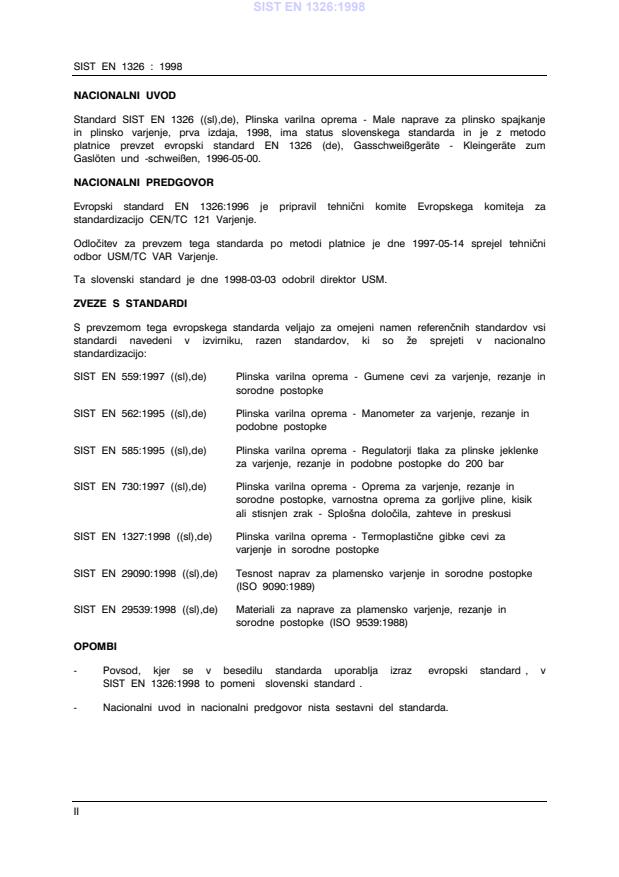 Standard SIST EN 1326 ((sl),de), Plinska varilna oprema - Male naprave za plinsko spajkanje