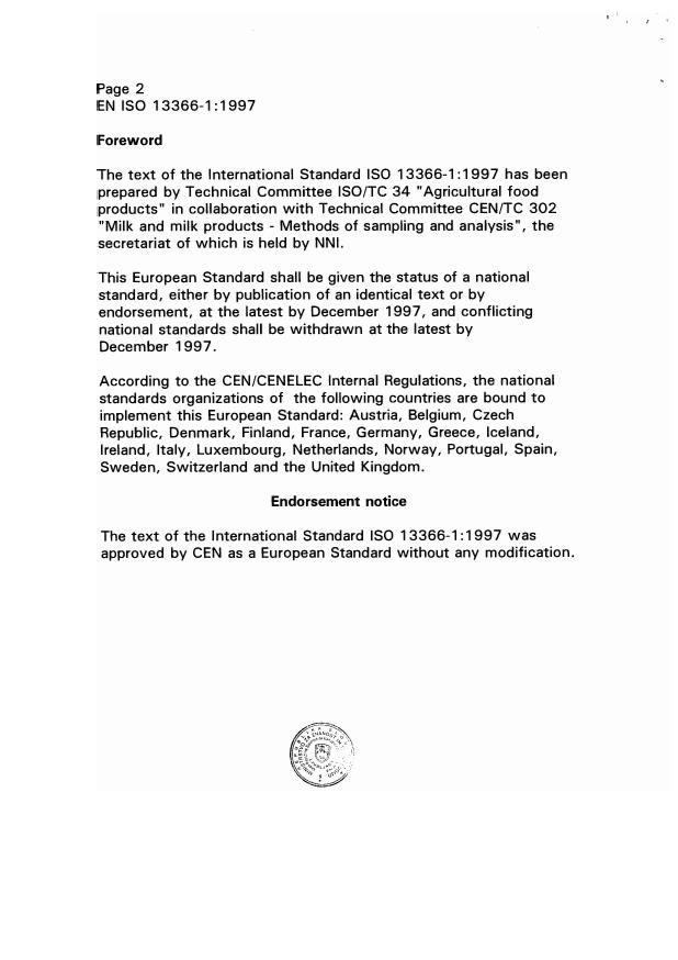 - CEN/TC 302 - Milk and milk products - Methods of sampling and analysis