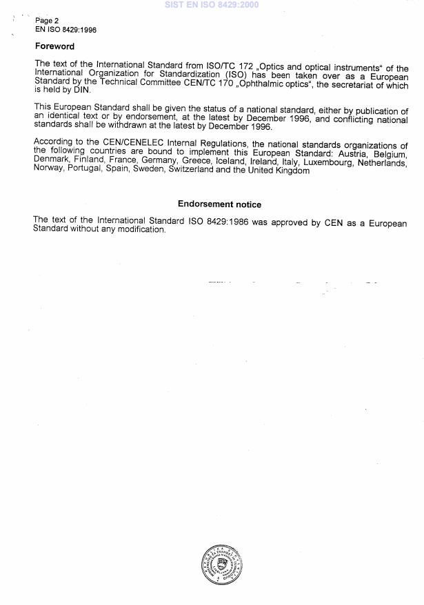 EN ISO 8429:1996 is a standard published by the European Committee for Standardization (CEN). Its full title is "Optics and optical instruments - Ophthalmology - Graduated dial scale (ISO 8429:1986)". This standard covers: Migrated from Progress Sheet (TC Comment) (2000-07-10): RG