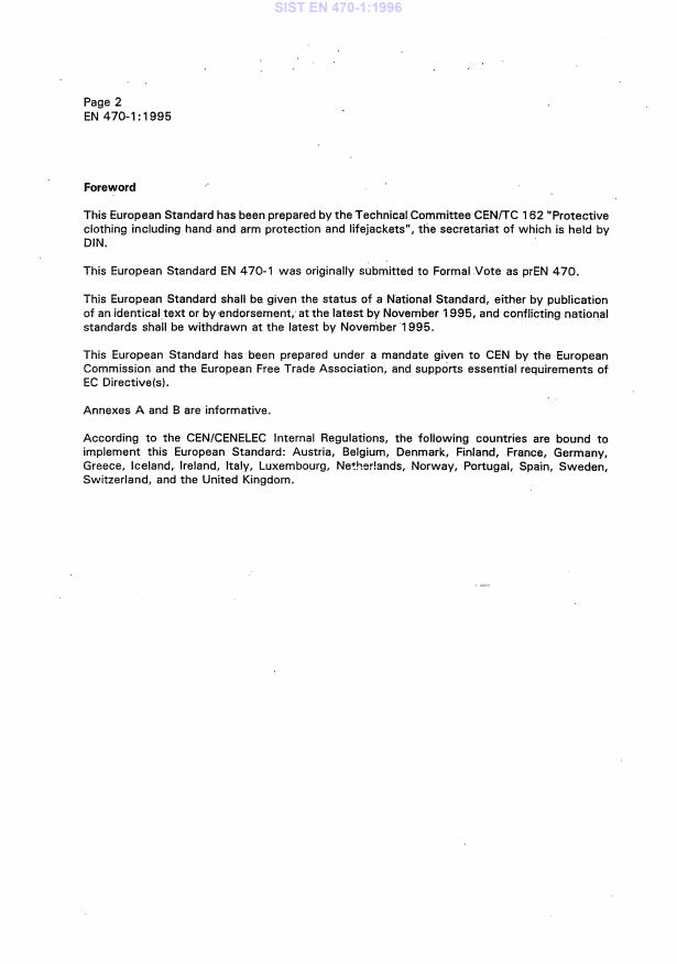 EN 470-1:1995 is associated with the following European legislation: EU Directives/Regulations: 89/686/EEC; Standardization Mandates: M/BC/CEN/88/10. When a standard is cited in the Official Journal of the European Union, products manufactured in conformity with it benefit from a presumption of conformity with the essential requirements of the corresponding EU directive or regulation.