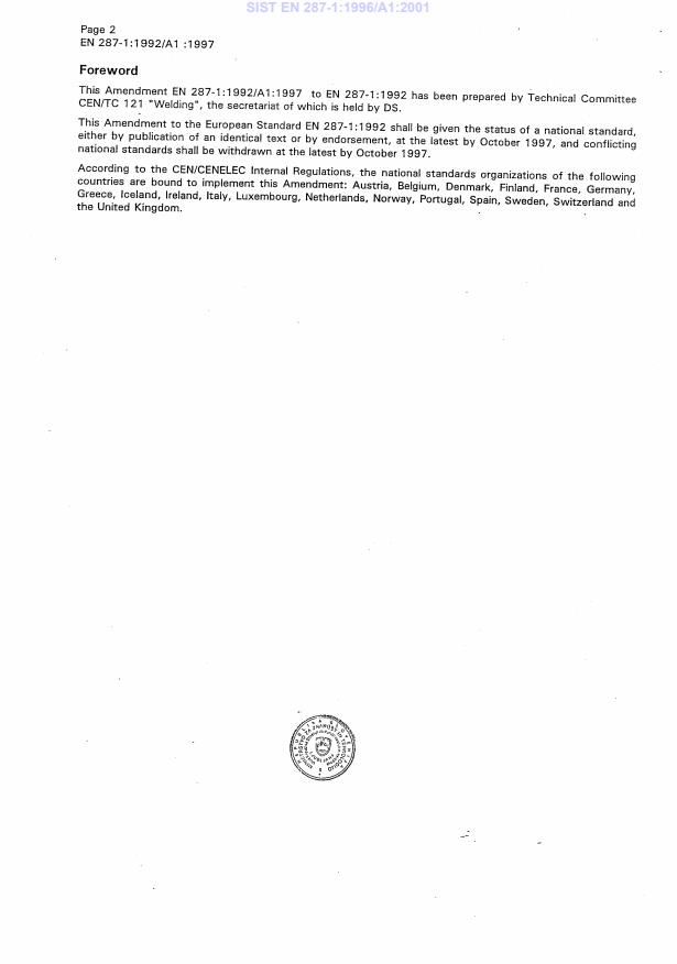 Ta slovenski standard je istoveten z: EN 287-1:1992/A1:1997