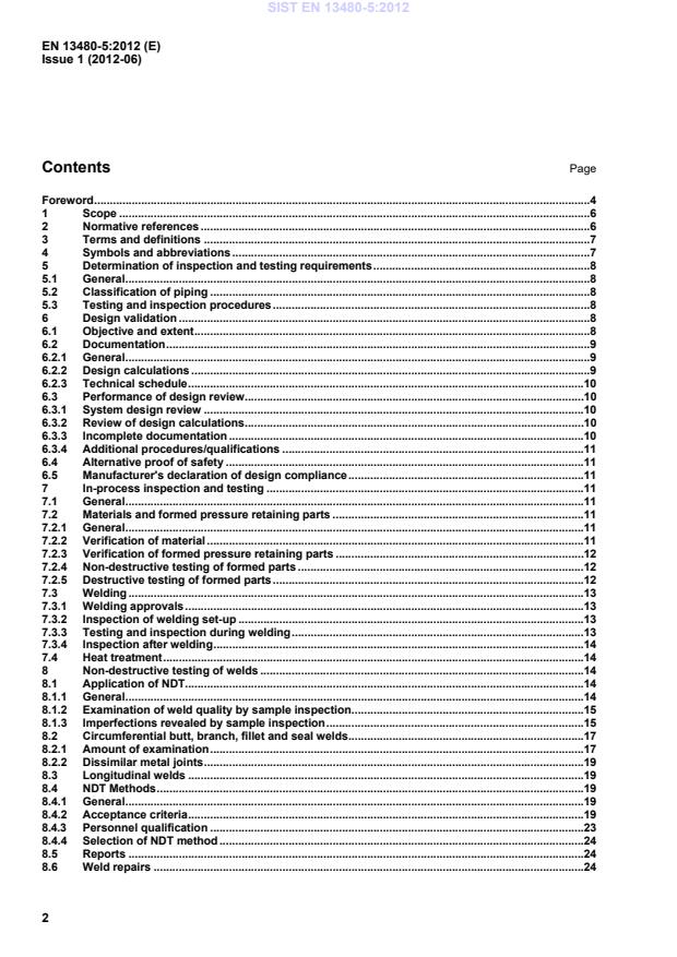 Ta del tega evropskega standarda določa zahteve za pregled in preskušanje industrijskih cevovodov, kot določa standard EN 13480-1:2012, ki ju je treba izvesti na posameznih navitjih cevnih sistemov, vključno z nosilci, ki so konstruirani v skladu s standardoma EN 13480-3:2012 in EN 13480-6:2012 (če je to potrebno) ter izdelani in vgrajeni v skladu s standardom EN 13480-4:2012.