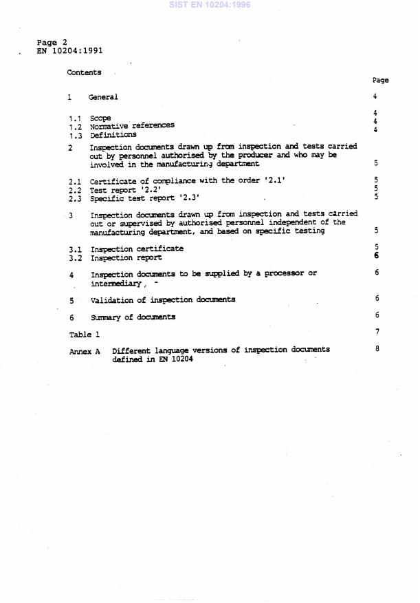 EN 10204:1991 is a standard published by the European Committee for Standardization (CEN). Its full title is "Metallic products - Types of inspection documents". This standard covers: This European standard defines the different types of inspection documents supplied to the purchaser, in accordance with the requirements of the order, for the delivery of metallic products.