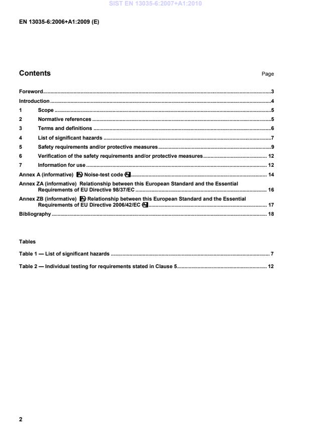 Tables Table 1 — List of significant hazards . 7 Table 2 — Individual testing for requirements stated in Clause 5 . 12