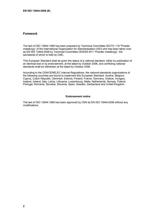 as EN ISO 13944:2006 by Technical Committee CEN/SS M11 "Powder metallurgy", the
